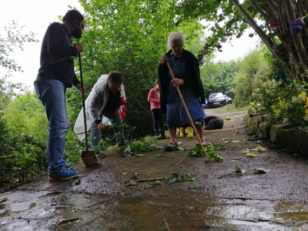 Sabíamos que uno de los rituales de más importancia para las mujeres de los pueblos era el enrame de las fuentes. Así que, nos pusimos en contacto con sus vecinas para colaborar en esta tarea tan gustosa y relevante para la historia de este pueblo.